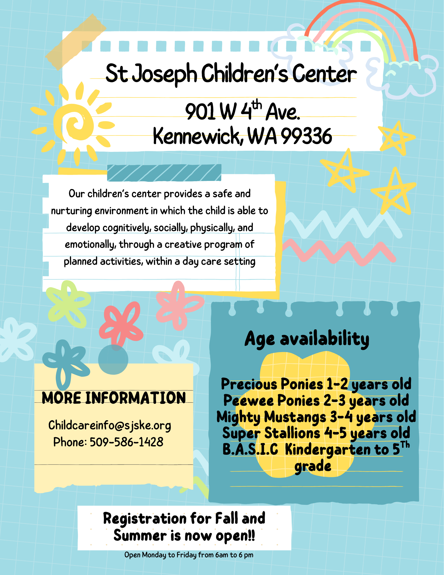 901 W 4th Ave. Kennewick, WA 99336 (509) 586-1428 email childcareinfo@sjske.org